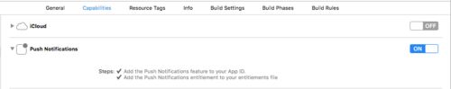 Project SettingsのCapabilitiesのタブを開き、PushNotificationsをONにします production.entitlements <plist version="1.0"> <dict> <key>aps-environment</key> <string>productio…</string></dict></plist>